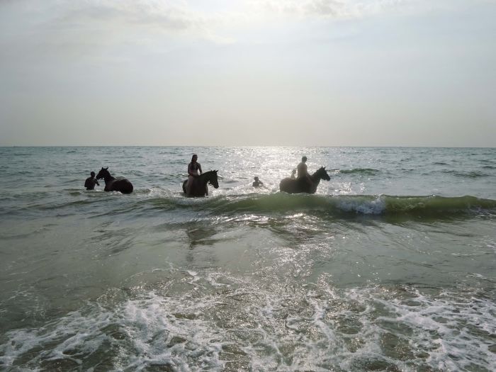 Senegal Sternritte: (Senegal Reittour weiter unten)1. Tag: Ankunft in Dakar. Sie werden am neuen internationalen Flughafen von Dakar (Dakar Blaise-Diagne DSS) abgeholt und zur Farm (Transferzeit ca. 1.5-2h) gebracht. Die Farm liegt im Herzen des Deltas Sine-Saloum. Auf der Farm werden Sie herzlich willkommen geheissen und geniessen ein erstes Abendessen. Übernachtung auf der Farm. 2. Tag: Erster Ritt rund um die Farm (ca. 3 Stunden)Nach einer ersten erholsamen Nacht erwartet Sie bereits ein leckeres Frühstück. Anschliessend fahren Sie mit einem Boot auf die Insel Mar, um eine lokale Messe zu besuchen. Auf der Insel wohnen etwa 2000 Menschen und sie besteht aus vier Dörfern. Bei MarLodj befindet sich die einzige Kirche der Insel, die berühmt ist für ihre Sonntagsmesse mit etwas Trommelbegleitung, den heiligen Bäumen und Künstlern, die Sandmalereien erstellen. Danach fahren Sie zurück zur Farm und geniessen ein gemeinsames Mittagessen. Am Nachmittag werden die Pferde eingeteilt und Sie unternehmen einen ersten Proberitt (ca. 3 Stunden) durchs Delta. Erleben Sie die senegalesische Savanne, die Baumlandschaften und Sandwege vom Pferd aus. Pünktlich zum Sonnenuntergang kommen Sie wieder auf der Farm an und geniessen die herrlichen Farben der untergehenden Sonne. Beim Abendessen lassen Sie den Tag in gemütlicher Runde ausklingen. 3. Tag: Farm - Palmarin - Farm (Reitzeit ca. 7 Stunden) Sie brechen nach dem Frühstück zu einem längeren Ritt auf und reiten über lange Sandbänke. Je nach Jahreszeit haben Sie die Chance, Pelikane, Flamingos und Reiher zu sehen. Sie haben immer wieder die Gelegenheit zu flotteren Galoppaden entlang der unberührten Sandstrände - diese erwarten Sie hier soweit das Auge reicht. Sie reiten in Richtung von Palmarin. Dort angekommen, machen Sie ein Picknick am Strand - lassen Sie es sich schmecken! Palmarin erstreckt sich bis nach Litoral und besteht aus drei Ökosystemen - der Mangrove, dem Wald und der Savanne, freuen Sie sich auf eine wunderschöne, abwechslungsreiche Landschaft! Das Naturschutzgebiet begeistert durch seine reiche Flora und Fauna. Sie vernehmen die Schreie des heiligen Ibis, der durchs Wasser sticht oder das Klappern der Flügel des Reihers, der davonfliegt. Am Ende Ihres Rittes können Sie den Sonnenuntergang geniessen und bewundern, wie die Sonne hinter den Mäandern des Bolongs (Meeresarm) untergeht - ein wunderschöner Anblick! Anschliessend kehren Sie zur Farm zurück und sitzen beim Abendessen zusammen. 4. Tag: Farm - Ngazobil (Reitzeit ca. 7 Stunden)Sie sind heute wieder länger auf Ihrem Pferd unterwegs - ca. 50 km liegen vor Ihnen, vorbei an kleinen, authentischen Dörfern und durch grosse Palmenwälder. Am Morgen geht es durch den Busch bis Sie einige Dörfer, wie Sérères, Bambaras oder Peuls erreichen. Sie können hier einen kurzen Stopp bei einer Schule machen, wenn Sie etwas Schulmaterial für die Kinder mitgebracht haben. Diese freuen sich sehr darüber - es mangelt hier an vielem! Nach dem Mittagessen geht es weiter durch Buschland bis Sie das Dorf von Ngazobil erreichen. Hier gibt es ein Kloster, das zum Orden von St. Joseph gehört - unweit vom Meer gelegen. Hier verbringen Sie zwei Nächte und geniessen die Stille und Ruhe dieses Ortes. Wenn Sie heute nicht den ganzen Tag reiten möchten, so können Sie den Tag auch teilen und nur einen Teil mitreiten. 5. Tag: Nagazobil (Reitzeit ca. 3-4 Stunden)Sie reiten vom Strand aus bis zum Dorf von Mbodiène, vorbei an einer Lagune, bei der viele Vögel nisten. Das Panorama hier ist absolut sehenswert, denn hier befindet sich eine der grössten Nistkolonie von Seeschwalben auf der Welt. Zum Mittagessen kehren Sie zum Kloster zurück. Am Nachmittag haben Sie Zeit zum Entspannen. Sie können mit den Pferden schwimmen gehen - ein unvergessliches Erlebnis! Später gehen Sie zum Hafen von Joaln und erleben dort das alltägliche Fischerleben der Einheimischen. Immer wieder sehen Sie Fischerboote eintreffen und es herrscht geschäftiges Treiben. Übernachtung wieder im Kloster - lassen Sie sich vom Klang der Wellen in den Schlaf wiegen! 6. Tag: Ngazobil - Farm (Reitzeit ca. 7 Stunden)Es erwartet Sie heute wieder eine lange Reitstrecke von ca. 50 km. Sie reiten langsam zurück zur Farm, allerdings auf einem anderen Weg als Sie am Anfang Ihrer Reise geritten sind. Sie können auch hier entscheiden, nur einen Teil mitzureiten. Sie geniessen heute wieder lange, flottere Galoppaden und reiten über die Saloum-Inseln. Diese bestehen aus ineinander verstrickten Mangrovenbäumen (tropische Bäume, die in Küstengebieten vorkommen und dichte Wälder formen). 1981 wurde das Gebiet zum Weltbiosphärenresevert erklärt und 2011 zum UNESCO-Weltkulturerbe. Das Saloum Delta ist eines der grössten Mangrovengebiete Afrikas. Sie reiten hier entlang der Mangrovenbäume auf dem geheimen Weg zum Tor des Paradieses. Sie haben danach die Gelegenheit, abhängig von den Gezeiten, zur Insel Fadiouth zu reiten, eine von drei Muschelinseln in Senegal. Diese zählt mit ca. 9000 Einwohnern auf 15ha zu den am dichtesten besiedelten Inseln der Welt und ist mit dem Festland durch eine Holzbrücke verbunden. Je nach Wasserstand werden Sie bei der Überquerung des Meeresstandes je nach Gezeiten nass (von den Füssen bis hin zum Gesäss). Die Schönheit der Landschaft und das flottere Reiten wird Sie dafür jedoch entschädigen. Am Abend kommen Sie wieder ins Trockene zur Farm zurück und lassen die Abendstunden gemütlich ausklingen. 7. Tag: Farmritt (Reitzeit ca. 6 Stunden)Sie starten Ihren Ritt in Richtung des Dorfes Roh, im Norden von Ndangane. Sie unternehmen herrliche Galoppaden entlang langer Sandbänke und kommen immer wieder an Reisfeldern vorbei. Wunderschöne Ausblicke entlang der Bucht erwarten Sie, wo Sie anhalten und Ihr Picknick geniessen. Gegen Ende Ihres Tages reiten Sie zurück zur Farm und kommen unterwegs an einem riesigen Termitenhügel vorbei. Bei der Farm angekommen, müssen Sie Abschied von Ihre