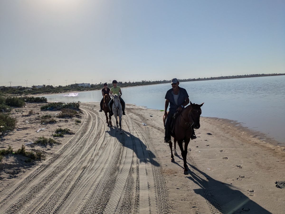 Auf der Insel Djerba, eingebettet in Olivenhaine und nur einen Kilometer vom Strand entfernt befindet sich der familiäre Reiterhof. Geniessen Sie Ausritte und Tagesritte am Mittelmeerstrand und erleben Sie die wilde, wunderschöne Natur des Hinterlandes auf dem Rücken traumhafter, gepflegter Araber-Berber-Hengste. Die Ritte führen an den herrlichen Sandstränden entlang, zur Flamingo-Insel, zur Lagune, durch Oliven- und Palmenhaine sowie durch kleine Siedlungen im Hinterland. Neben dem Reiten bieten sich Kutschfahrten, Ausflüge zu Märkten, Bootstouren, Wassersport als weitere Aktivitäten an.