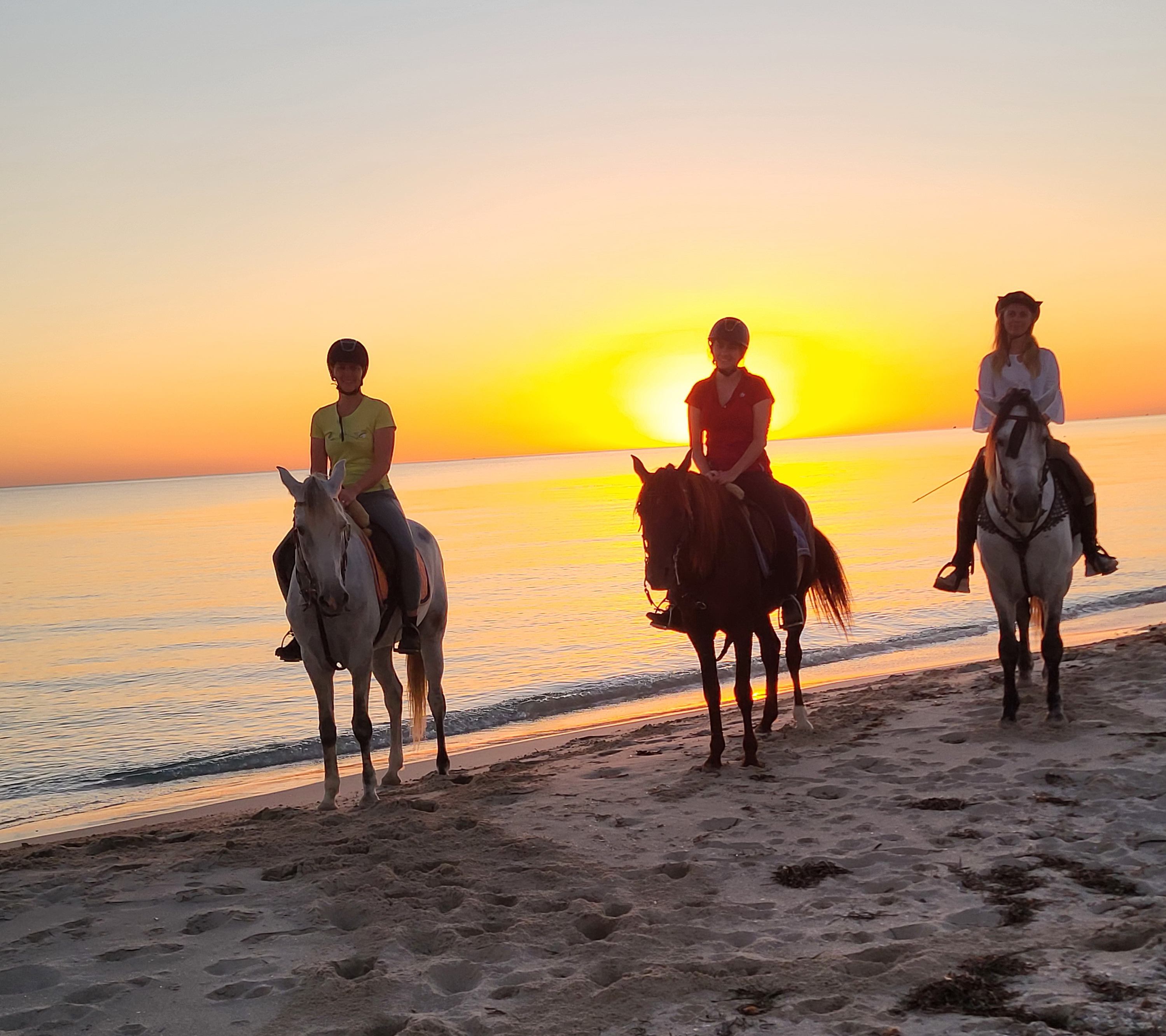 Sie haben die Auswahl zwischen zwei Reitprogrammen: Sternritte: Sie unternehmen sechs Tagesritte à ca. 6 Stunden, u.a. zur Blauen Lagune und zur Falmingo Insel. Vom Strand aus führen breite Sandwege zu kleinen maurischen Dörfern, Palmen- und Olivenhainen. Immer wieder bieten sich tolle Galoppstrecken! Ihr einheimischer Guide erklärt Ihnen einiges zum Leben der Bauern, Hirten und Fischer. Unterwegs geniessen Sie Ihr Picknick im Schatten der Bäume. Wunderschön sind auch die Sonnenuntergänge, die Sie auf dem Heimweg oft begleiten. Diese Variante ist nur für Fortgeschrittene Reiter geeignet.Ausritte: Sie unterhmen sechs Halbtagesritte à ca. 3 Stunden und haben so nebenbei noch Zeit für eigene Erkundungen, Wassersport, Baden, Wellness usw. Auch ideal, wenn Sie mit Nichtreitern reisen oder im Hochsommer, wenn es für die Ganztagesritte etwas warm ist und am Nachmittag das Meer zum Baden oder anderen Aktivitäten lockt. Sie können entscheiden zwischen Sonnenaufgangs oder -untergangsritten. Hier können sowohl Anfänger als auch Fortgeschrittene reiten.Tipp: Genießen Sie zur Abwechslung auch mal eine schöne Fahrt mit der Kutsche ins Hinterland.