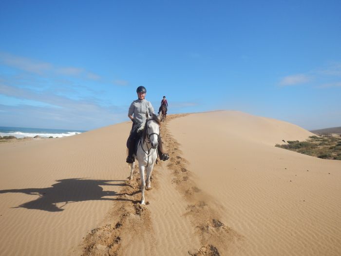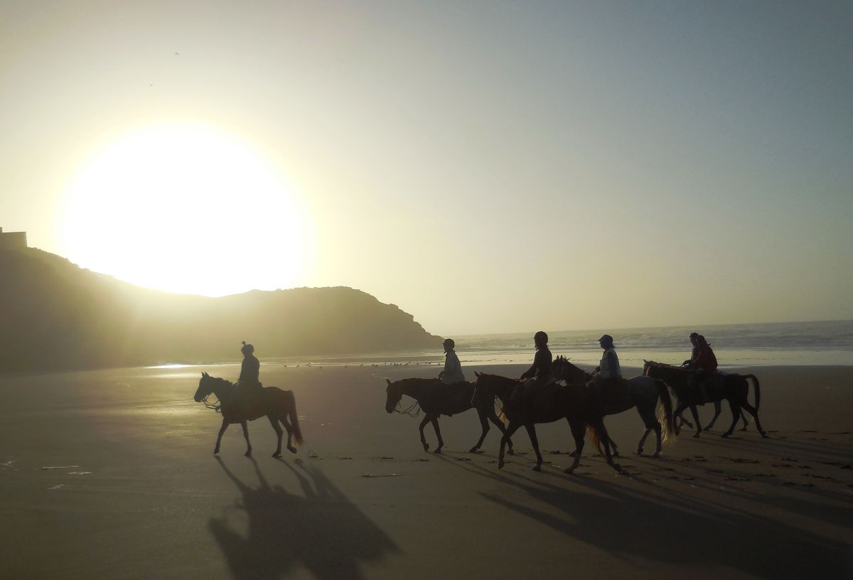 Dieser wunderschöne Strandtrail ist das Richtige für alle, die von spritzigen Galoppaden am Strand träumen, denn die Atlantikküste im Süden Marokkos bietet dafür die allerbesten Voraussetzungen: Endlose einsame Sandstrände bieten reichlich Platz und den idealen Untergrund. Sie entdecken die Küstenlandschaft zwischen Agadir und Tiznit. Dazwischen geht es durch Sanddünen, entlang Steilküsten mit herrlichem Blick auf den rauschenden Atlantik und über sandige Ebenen im Hinterland. Im Naturschutzgebiet von Massa lassen sich viele Vögel entdecken. Die tägliche Reitzeit liegt bei ca. 6 Stunden und es geht in allen Gangarten vorwärts. Ein Spass für sattelfeste Reiter/-innen!
