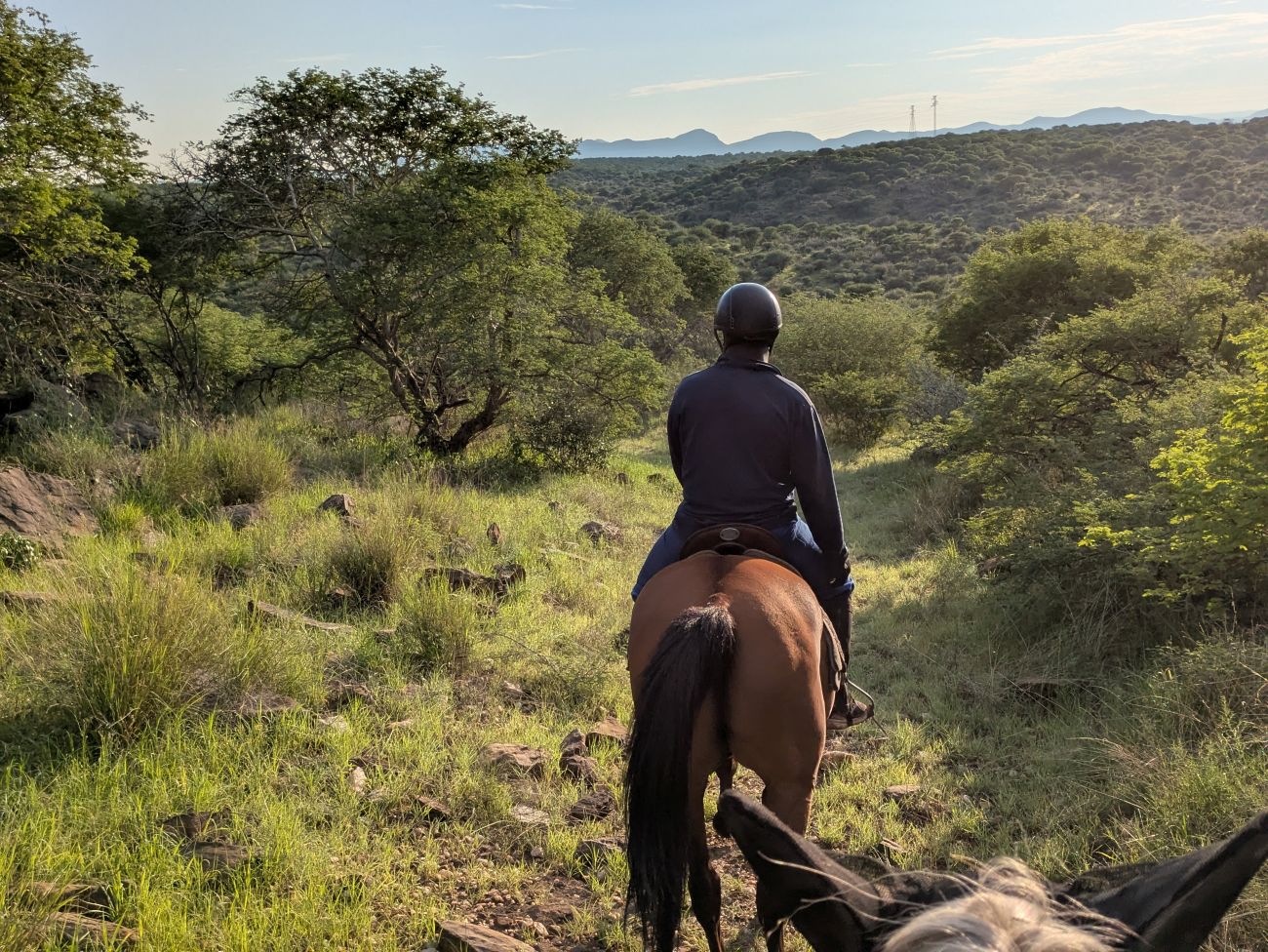 Sattel & Zaum: Englische Vielseitigkeits- und McLellan Sättel. Reiterfahrung: Vom Anfänger bis Fortgeschrittenen, die Ausritte werden an Ihr Können angepasst. Maximalgewicht: 90kg. Pferde: Ca. zehn Pferde, darunter Warmblüter, Araber und Boerpferde. Die Pferde leben in luftigen Paddockboxen, bzw. auf riesigen Koppeln in der Herde. Alle Pferde werden regelmässig Korrektur geritten und machen sowohl Anfängern als auf Fortgeschrittenen viel Freude.