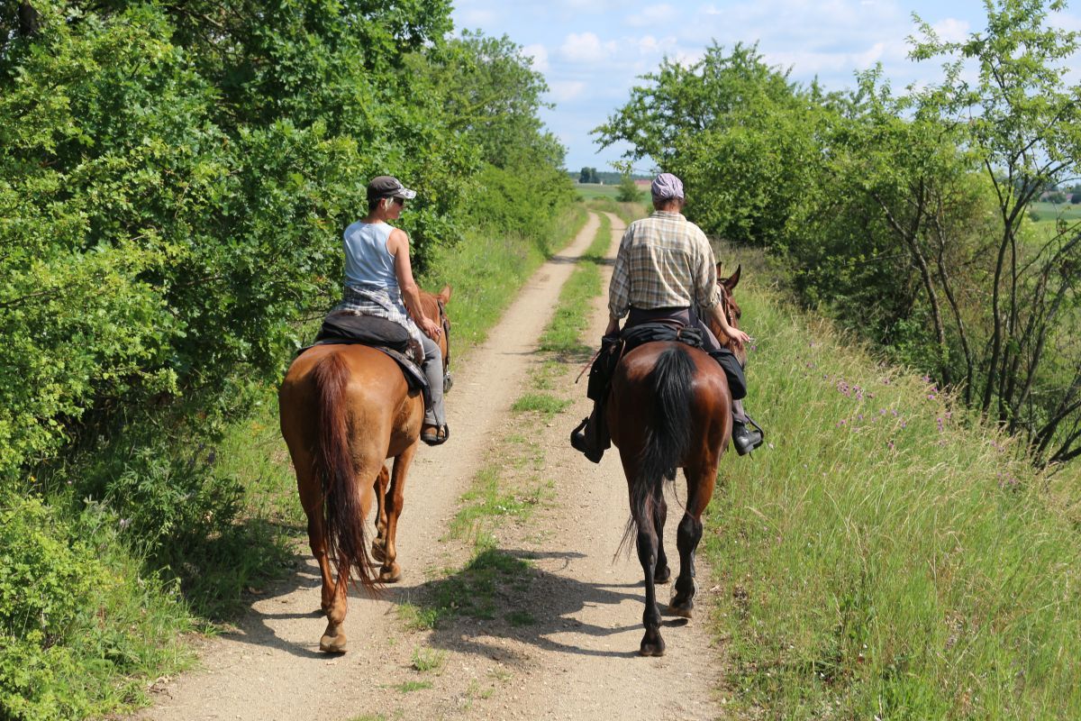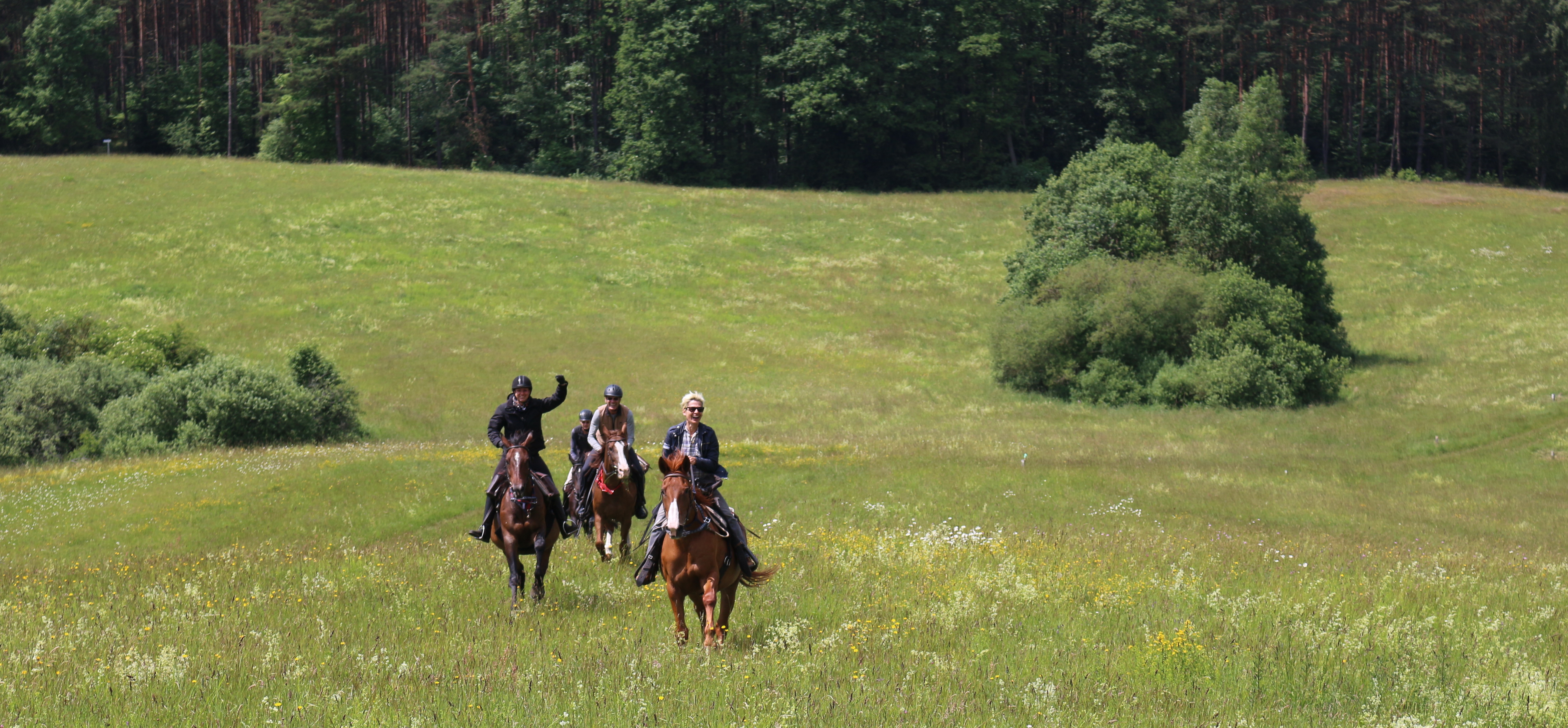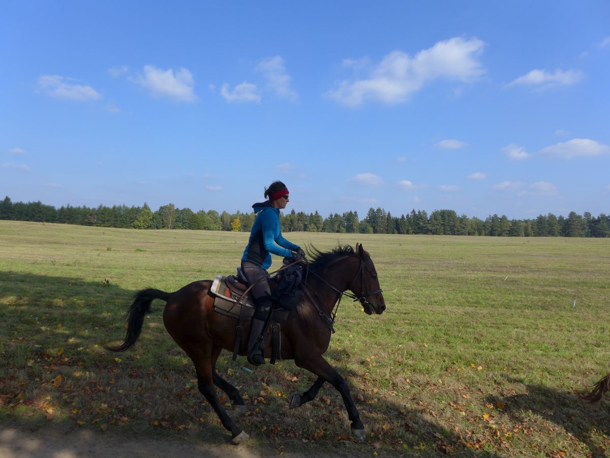 Pferde: Verschiedene Rassen (u.a. Holsteiner, Wielkepolska, Trakehner, Araber). Sie leben ganzjährig in der Herde auf der Weide – ausgeglichen, trittsicher und bestens für Geländeritte geeignet. Sattel & Zaum: Militärsättel und englische Trensen. Einige Westernsättel stehen zur Verfügung, sofern der entsprechende Sattel auf das für Sie passende Pferd passt. Reiterfahrung: Für Anfänger bis Fortgeschrittene geeignet. Anfänger können zunächst Unterricht auf dem Platz nehmen, bevor sie an den Ausritten teilnehmen. Bei den Ausritten werden die Reiter je nach Reitkenntnissen in Gruppen eingeteilt.