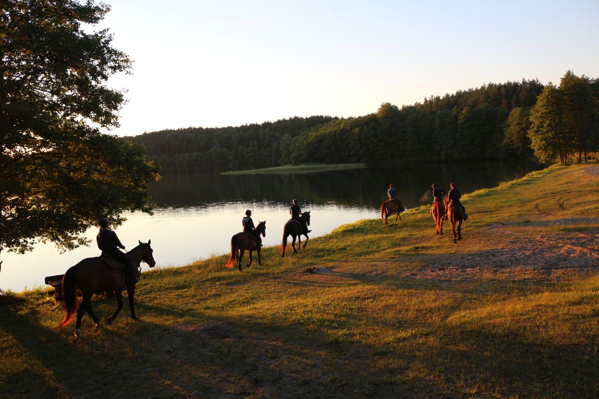 Das Reiterhotel liegt in einem idyllischen, ruhigen Gebiet im Drawski-Naturschutzgebiet. Die Gegend ist geprägt von zahlreichen kleinen Seen, umgeben von Kiefernwäldern und klaren Gewässern. Die eiszeitlich geprägte Landschaft mit sanften Hügeln, Wäldern und vielen Seen schafft eine natürliche, entspannende Atmosphäre. Die endlosen sandigen, überwiegened flachen Wege bieten perfekte Reitmöglichkeiten mit vielen langen Galoppstrecken. In unmittelbarer Nähe liegt der Komorze-See – ideal zum Baden, Angeln oder für ruhige Momente am Ufer. Die Umgebung eignet sich hervorragend für Spaziergänge, Radtouren und Ausritte zu Pferd.Ein Ort für alle, die Stille, Weite und Natur suchen – fernab vom Massentourismus. Das Programm eignet sich für erfahrene Reiter, die die Ruhe der Natur geniessen möchten ebenso wie schöne Galoppaden, aber auch für weniger erfahrene Reiter, die nach ein paar Stunden auf dem Reitplatz an ersten Ausritten teilnehmen können.