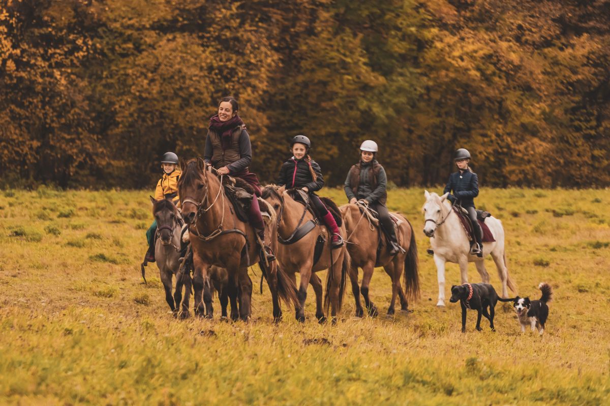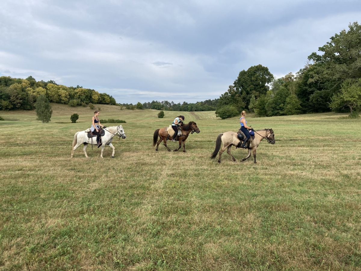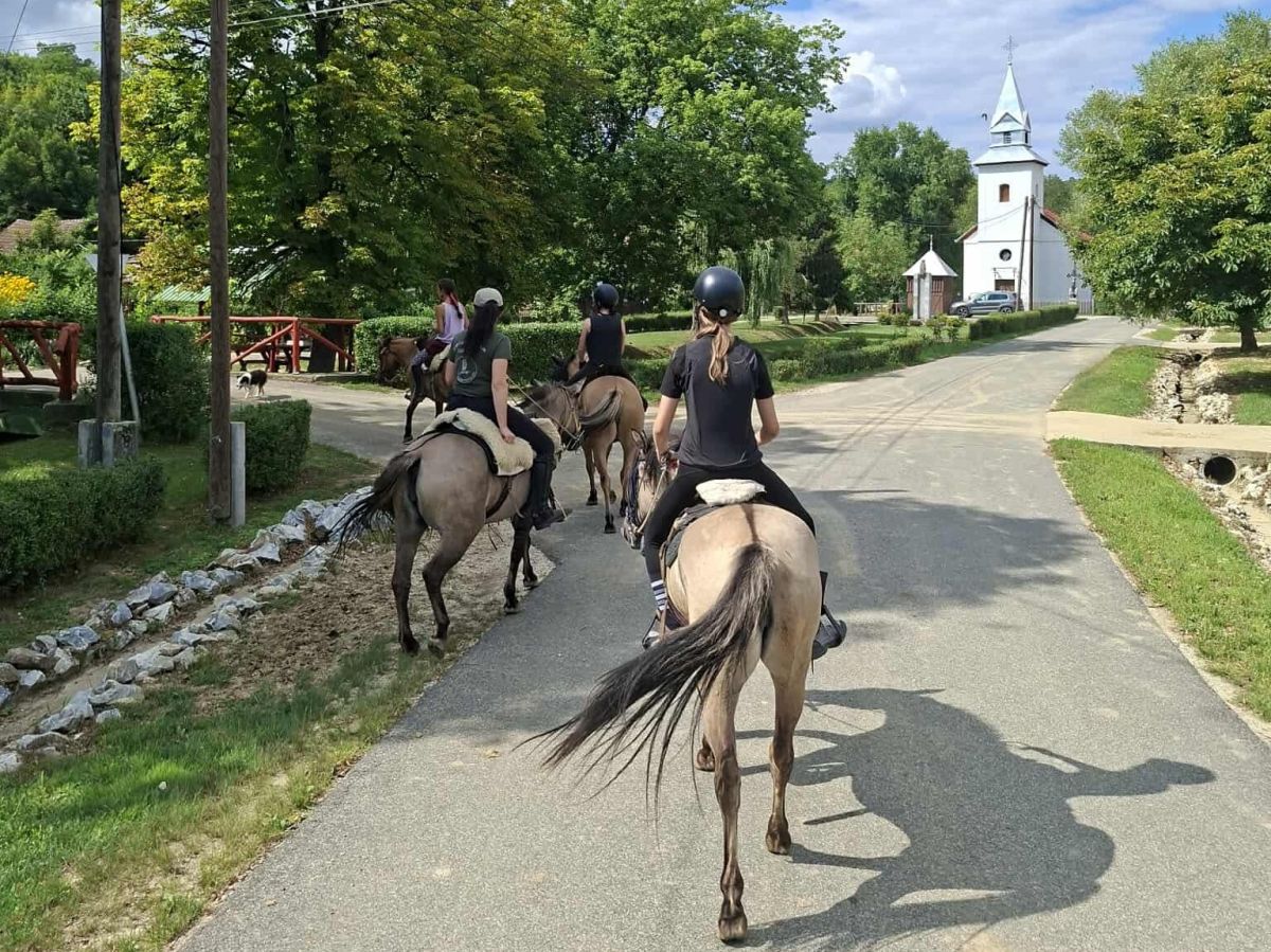Pferde: Sie reiten Kunfakó-Pferde (ähnlich wie Huzulen). Die meisten von ihnen werden auf der Farm geboren und aufgezogen und sind gut an das abwechslungsreiche Gelände der Region angepasst. Sie leben das ganze Jahr über in Herden auf grossen, offenen Weiden, was sie gesund und widerstandsfähig gegenüber allen Wetterbedingungen hält. Sie reiten sowohl Wallache als auch Stuten. Alle sind relativ klein, aber es sind starke Gebirgspferde mit einem freundlichen und sanften Charakter. Das macht sie sowohl für Kinder als auch für weniger erfahrene Reiter ideal. Stockmaß: 135–155 cm. Sattel & Zaum: Es werden hauptsächlich ungarische Holzsättel mit Schaffellbezügen, traditionelle lokale Wanderreit-Sättel und einige Westernsättel verwendet. Satteltaschen und Regenmäntel werden gestellt. Reiterfahrung: Reiter müssen sich in allen drei Gangarten sicher fühlen, auch auf verschiedenen Geländen. Auf einigen kurzen Strecken müssen die Pferde bergab geführt werden. Maximale Reitergewicht: 75 kg.