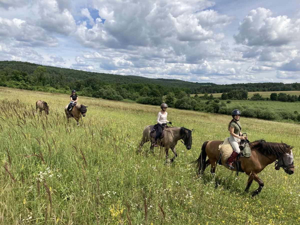 1. Tag: Nach Ihrer Ankunft in Gombasek haben Sie – wenn Sie früh anreisen – ausreichend Zeit, die Umgebung zu erkunden oder die Tropfsteinhöhle von Gombasek zu besuchen. Am Nachmittag treffen Sie Ihre Gastgeberin, die Ihnen die Pferde vorstellt und Ihnen mehr über die Kunfakó-Rasse, das Zuchtprogramm sowie ihren Hof erzählt. Anschliessend beziehen Sie Ihr Zimmer und gehen gemeinsam zum Abendessen, um das Programm der kommenden Woche zu besprechen und sich gegenseitig kennenzulernen.2. Tag: Nach dem Frühstück brechen Sie zu einem Proberitt auf. Die Route führt Sie in die umliegenden Berge, wo Sie bereits die ersten zauberhaften Ausblicke erwarten. Zur Mittagszeit legen Sie eine Pause ein und geniessen ein Picknick mit Blick auf den Sajó, der sich malerisch durch das Tal schlängelt. Der Rückweg führt über kleine, romantische Pfade, vorbei an Bächen, Wäldern und weiten Wiesen. Auf dem letzten Stück hinab ins Tal steigen Sie ab und führen die Pferde ein kurzes, steiles Wegstück hinunter, bevor Sie zur Farm zurückkehren.Am Abend setzen Sie sich wieder gemeinsam zum Abendessen zusammen und besprechen die wichtigsten Eindrücke des Tages. Anschliessend stehen Sauna und Hot Tub für Sie bereit. Da die kommenden Tage lang und körperlich anspruchsvoller werden, können Sie sich hier noch einmal richtig verwöhnen lassen. Reitzeit: ca. 4–5 Stunden, zu Fuss: ca. 30 Minuten.3. Tag: Nach dem Frühstück satteln Sie die Pferde und verlassen Gombaszög. Der Ritt führt Sie entlang des Sajó-Ufers, wo Sie einen herrlichen Blick auf die umliegenden Berge und Hügel geniessen können. Unterwegs passieren Sie das nahegelegene Städtchen Rožňov und reiten weiter entlang des Berges bis zu einem wunderschönen Aussichtspunkt, von dem aus Sie die Umgebung in ihrer vollen Pracht bewundern können. Der Ritt geht weiter und schliesslich öffnet sich vor Ihnen der imposante Burg von Krasnahorka. Nach einem Besuch der Burg setzen Sie die Reise fort und geniessen ein Mittagessen in der Nähe. Anschliessend reiten Sie weiter in südlicher Richtung zum Ort Várhosszúrét, wo Sie übernachten werden.4. Tag: Heute steigen Sie hinauf zum Szilicei-Plateau, wo Sie Ihren Ritt auf der Hochebene fortsetzen. Nachdem Sie über schmale Waldwege reiten, machen Sie in einer lokalen „Hütte” eine Pause, um sich zu stärken. Dann folgt eine wirklich lange Plateau-Strecke. In Lucka angekommen, besuchen Sie die mittelalterliche Wehrkirche und reiten dann weiter bis zur Unterkunft im Dorf Szadelő am oberen Ende des Szádelői-Tals.5. Tag: Am Morgen verlassen Sie das Dorf Szádelő und reiten auf den Gipfel des nahe gelegenen Hügels, um die Burg Tornai zu besuchen. Nach dieser kurzen Pause reiten Sie in Richtung ungarische Grenze. Sie machen eine Pause an der Grenze im Zentrum von Hídvégárdo, um sich zu erfrischen und von dort aus ist es nur noch eine kurze Strecke durch die Hügel, bis Sie Ihre Unterkunft für die Nacht in Tornabarakony erreichen.6. Tag: Heute reiten Sie von Tornabarkony in Richtung Szögliget, wo Sie auf den gemähten Wiesen mit Sicherheit Hirsche und Rehe sehen werden. Sie reiten auf dem ungarischen Nationalwanderweg und und besuchen ein Kloster. Dann steigen Sie hinab ins Tal des Flusses Bódva, wo Sie nach einem kurzen steilen Abschnitt einen der schönsten Aussichtspunkte hier erreichen, den Tilammas-Hügel neben dem Dorf Szögliget. Dann setzen Sie Ihre Reise bergab fort und erreichen das Dorf, wo sich Ihre Unterkunft befindet.7. Tag: Von Szögliget aus reiten Sie nach Szádvár, wo Sie ein wunderschönes Panorama erwartet. Von dort aus geht es weiter durch das Ménes-Tal, vorbei am Ménes-See, wo Sie je nach dem Wetter auch mit dem Pferd schwimmen können. Anschliessend besuchen Sie Szelcepuszta, die Huzulen-Zuchtfarm von Jósvafő. Am Nachmittag machen Sie sich auf den Heimweg, überqueren erneut die Grenze durch die Hügel und kehren zur Farm in Gombaszög zurück.8. Tag: Abreise nach dem Frühstück.Änderungen vorbehalten!