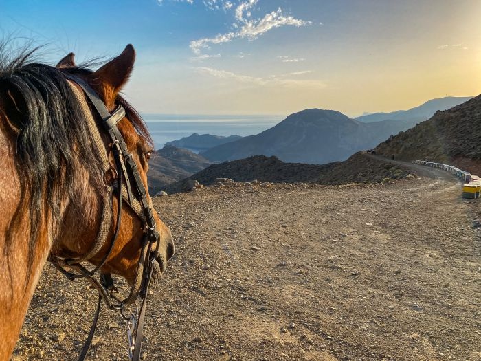 Unterkunft Der Hotelkomplex befindet sich in einem malerischen Bergdorf in Küstennähe und besteht aus mehreren, traditionellen Apartments unterschiedlicher Grösse. Diese sind individuell und mit viel Liebe fürs Detail gestaltet. In der Architektur spiegelt sich die typisch kretische Bauweise mit viel Holz, Stein und Rundbögen wider. Im Hotelrestaurant mit Meerblick nehmen Sie Frühstück und Abendessen ein, das Mittagessen wird Ihnen an den meisten Reittagen als Lunchpaket gereicht.