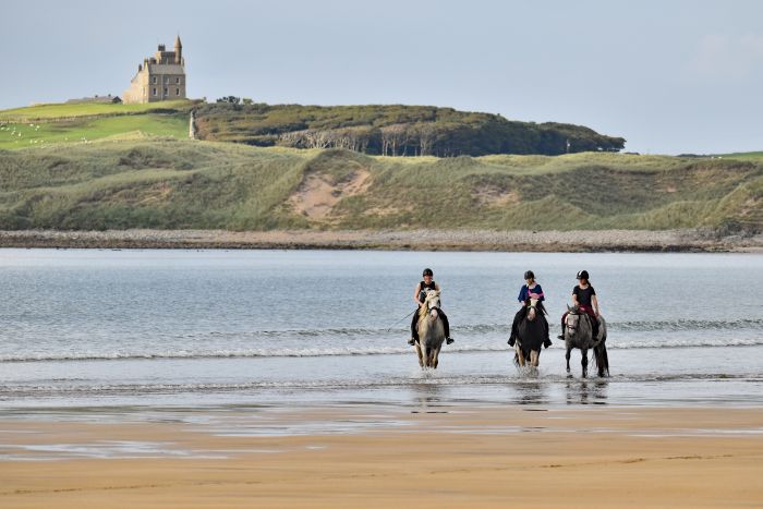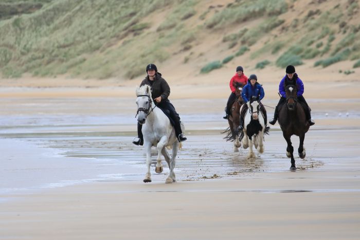 Sattel & Zaum: Englisch. Reiterfahrung: Für die Reitwoche sollte man sattelfest in allen Gangarten im Gelände sein. Pferde: Lokale Rassen, darunter Irish Cob, Welshponys, Irish Hunter, Irish Draught.