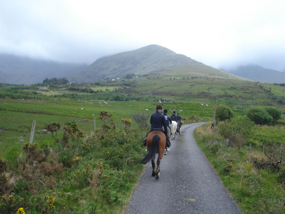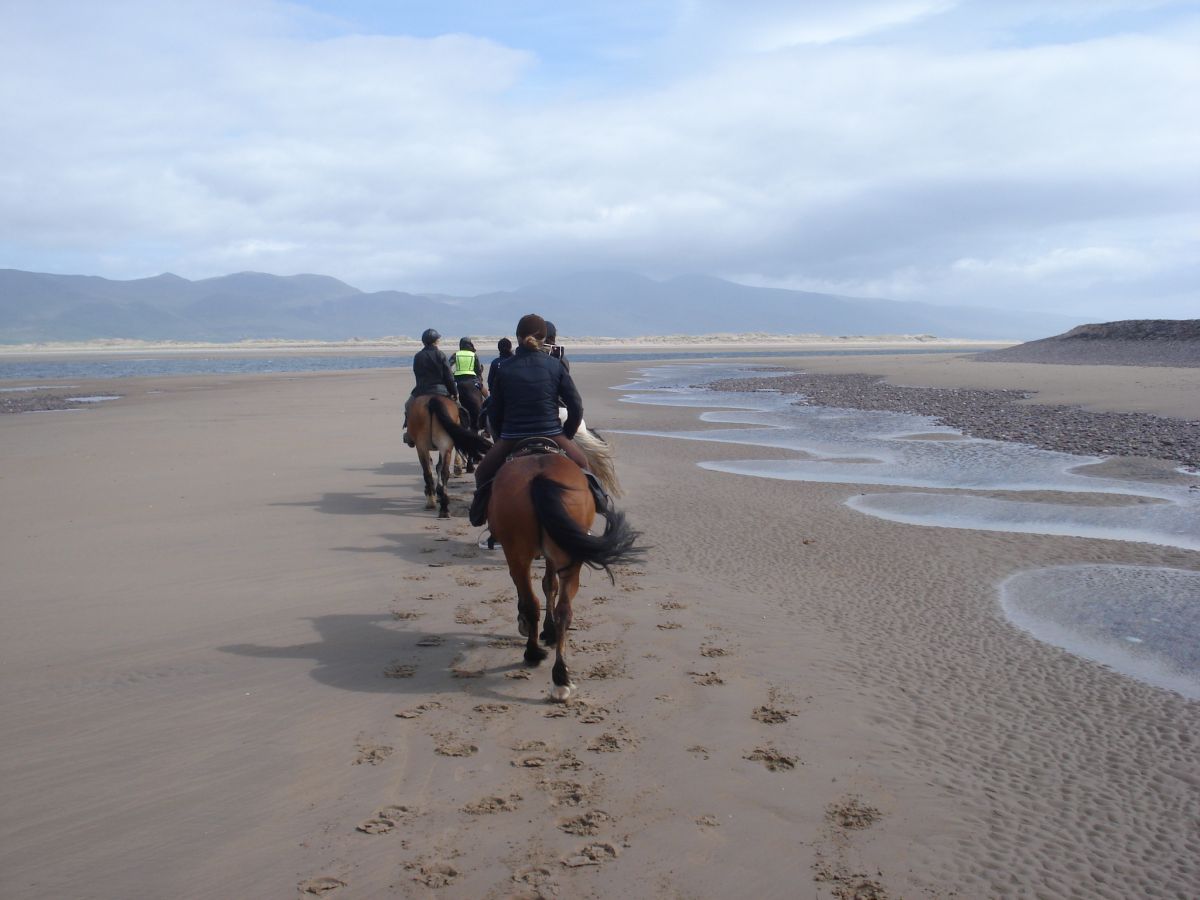 Im Südwesten Irlands gelegen, bietet das County Kerry eine äusserst abwechslungsreiche Landschaft. Hohe Berge, Wälder, Seen, Wasserfälle und jede Menge Strände und Wattgebiete. Dazu kommt das vom Golfstrom geschaffene moderate Klima, das sogar Palmen wachsen lässt und auf den vorgelagerten Inseln die reichsten Vogelkolonien Europas hat entstehen lassen. Die Landschaft ist saftig-irisch grün, der ständige Wechsel des Farbenspiels zwischen Wolken und Meer, Bergen und Wiesen schafft dieses einzigartige irische Landschaftsgefühl. Sie reiten durch Irlands höchstes Gebirge (bis 850m), über die Strände von Waterville und den 6km langen Sandstrand von Rossbeigh. Sie reiten einige Strecken auch auf geteerten Strassen - nicht überall gibt es Sand- und Feldwege.Sie erleben die typische irische Landschaft und auch die irische Lebensweise, wobei die legendären Pubs mit Guiness und der einzigartigen irischen Musik nicht fehlen dürfen!
