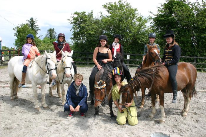 Pferde: 30 Ponys und Pferde: Irish Hunter, Cobs und Connemaras, alle sehr lieb und umgänglich. Sattel & Zaum: Englische Sättel zum Springen, Dressursättel, auf Wunsch Westernsättel. Es besteht Reithelmpflicht. Beim Cross-Country muss ausserdem ein Body-Protector getragen werden. Reiterfahrung: Vom Anfänger bis zum erfahrenen Reiter. Cross-Country-Training nur für erfahrene Reiter. Jugendliche ab 13 Jahren auch ohne Begleitung eines Erwachsenen.