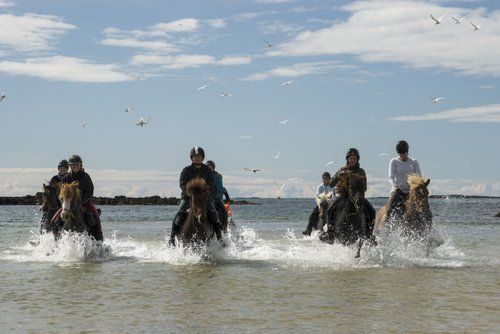 Pferde: Sie reiten natürlich auf Islandpferden: robust, äusserst trittsicher, vorwärtsgehend und zuverlässig. Das Reittempo ist besonders flott, Sie reiten überwiegend im Tölt. Für jeden Reiter stehen 2-3 Reitpferde zur Verfügung, die in einer frei laufenden Herde mitgetrieben werden. Sattel & Zaum: Isländische Wanderreitsättel und Wassertrense. Reiterfahrung: Sie sollten mindestens 5 Jahre regelmässig geritten sein und fremde Pferde ohne Einweisung in allen Gangarten beherrschen. Das Tölten wird vor Ort gezeigt. Besonders im Watt geht es munter voran, wofür auch die frei laufende Herde sorgt, die sie an einigen Tagen begleitet. Das Tempo ist sehr flott, aber ausser an zwei Tagen sind die Etappen nicht allzu lang (4-7 Std.).