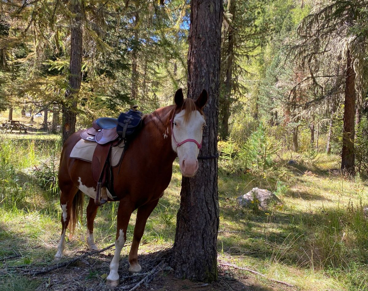 Pferde: Diverse Kleinpferde mit Stockmass bis ca. 1,60m, darunter Quarter, Painthorse und Haflinger. Die Pferde leben in Gruppen auf grosszügigen Weiden und Ausläufen. Für schlechte Witterung gibt es zudem einen Boxenstall. Sattel & Zaum: Westernsättel, Trense. Reiterfahrung: Sicherheit in allen Gangaten, die Pferde müssen an steilen Passagen entsprechend entlastet und phasenweise auch geführt werden, daher ist eine gute Trittsicherheit und Jondition gefragt. Maximales Reitergewicht: 85kg.
