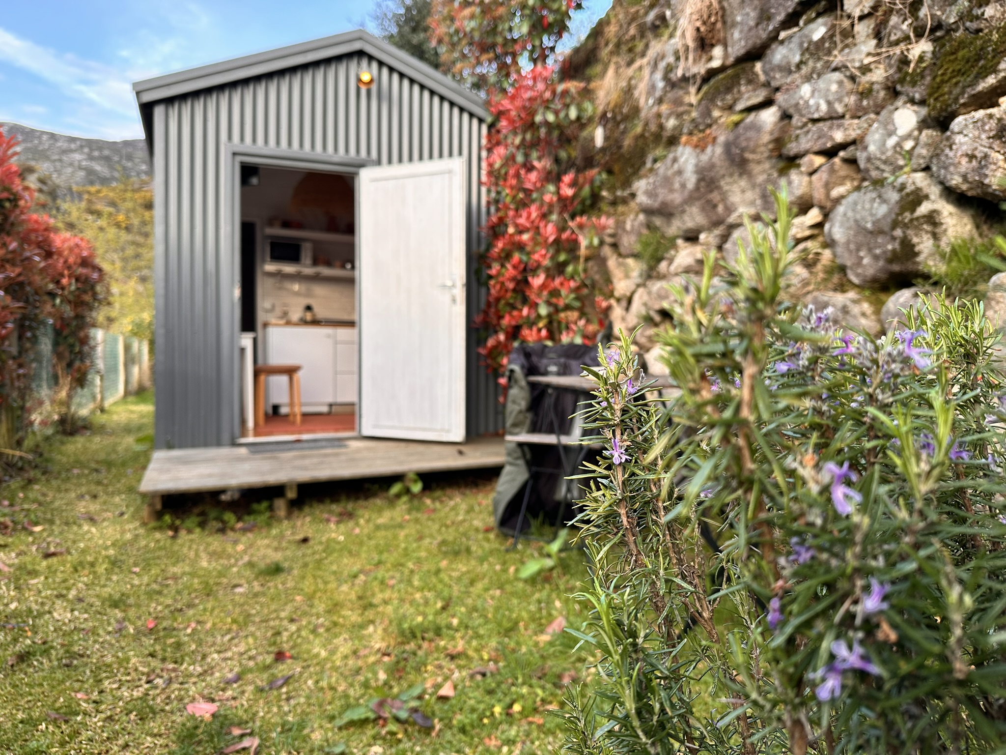 Spät am Abend komme ich in meinem gebuchten Tiny House in den Bergen an. Unser Gastgeber Pedro hat mir eine herzliche Willkommensnachricht und einen Vinho Verde aus der Region hinterlassen. Ganz entspannt kann ich mich in meinem "neuen Domizil" einrichten und den Abend im hauseigenen Indoor-Jacuzzi ausklingen lassen. Durch die Fensterfront sehe ich in der Ferne die Lichter von Ponte de Lima. Unsere Gastgeber haben das Gelände vor einigen Jahren gekauft und für Gäste, die eine Auszeit in der Natur suchen, hergerichtet. Insgesamt befinden sich mehrere Tiny Houses, ein kleiner Stall für die Trailpferde und bald auch ein eigenes Restaurant auf dem weitläufigen Gelände. Sie selbst besitzen einen grossen Reitstall unten im Dorf. Die Tiny Houses sind alle umsichtig in die Natur eingepflegt und bieten ein hohes Mass an Privatsphäre. Jedes Häuschen ist mit einem Bad, einer kleinen Küche und einem Schlafzimmer ausgestattet. Ein gemütlicher Rückzugsort. Am Morgen bekomme ich einen Picknickkorb mit einem umfangreichen Frühstück vor die Haustür geliefert. Ich nehme mir was ich brauche und beginne den Tag mit einem Frühstück im Garten. Jetzt, Mitte März sind die Temperaturen bereits angenehm warm.